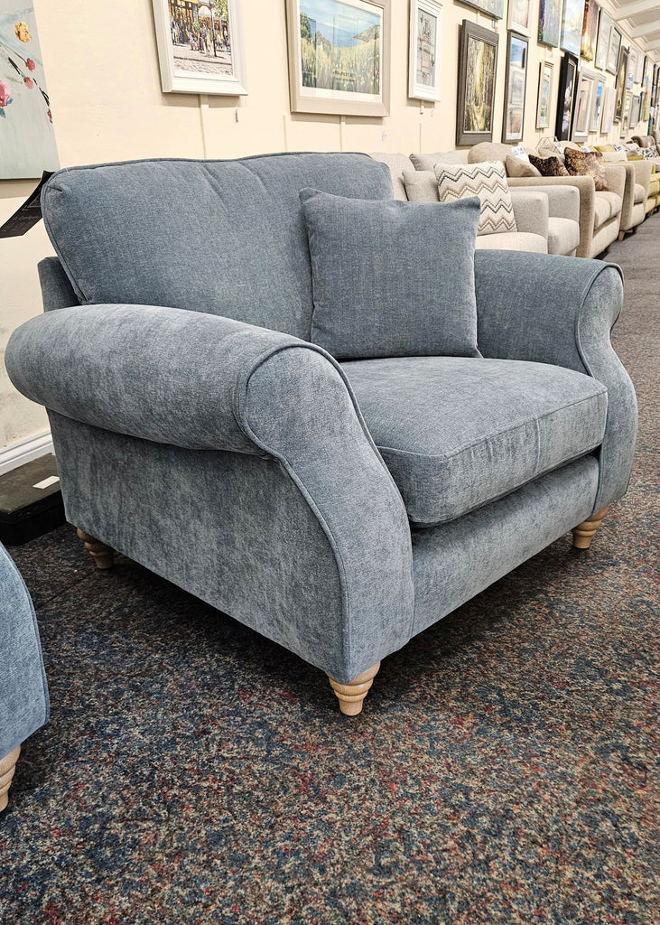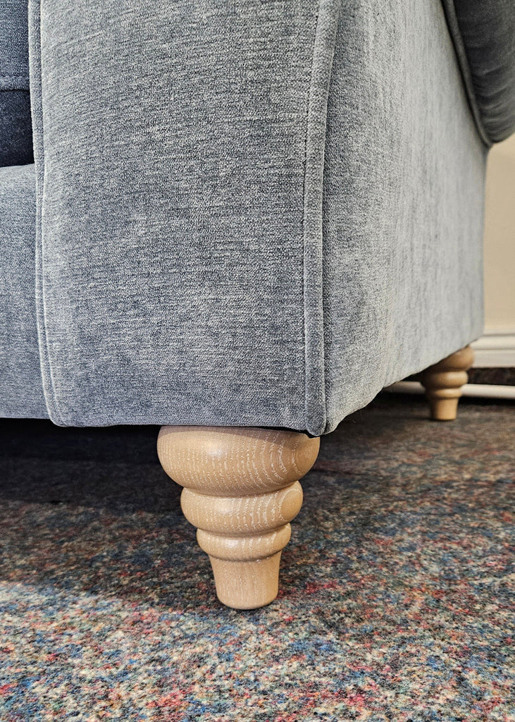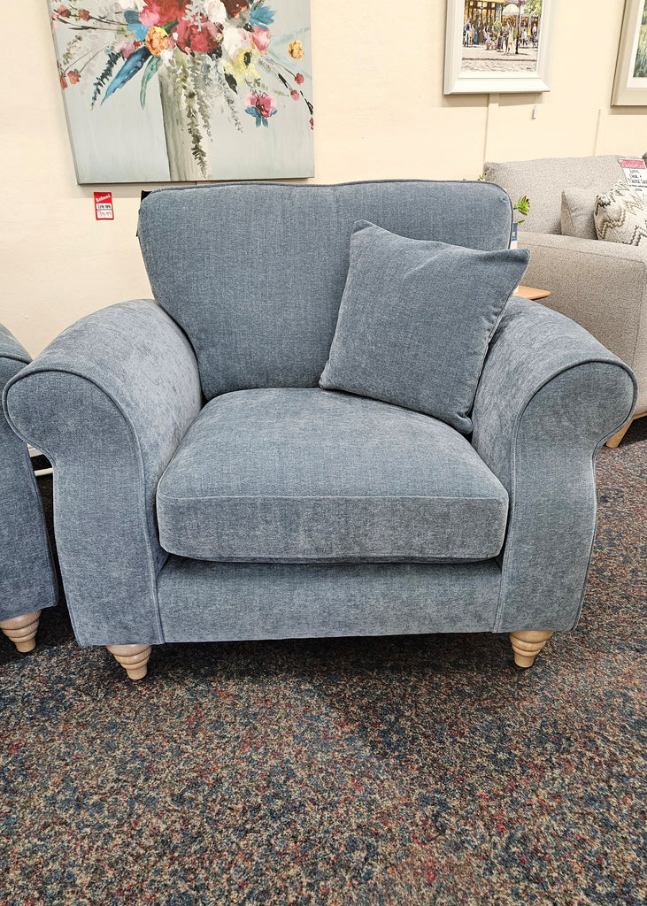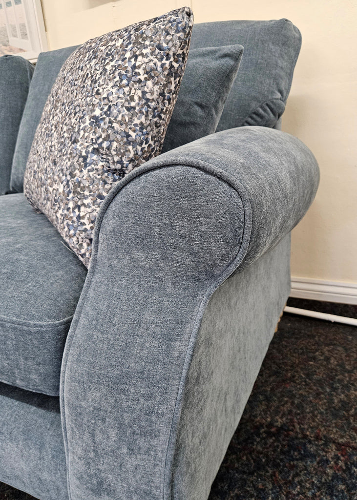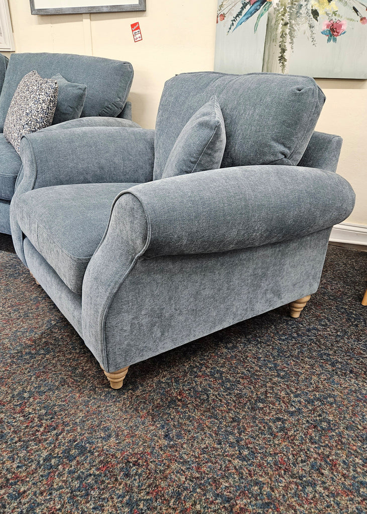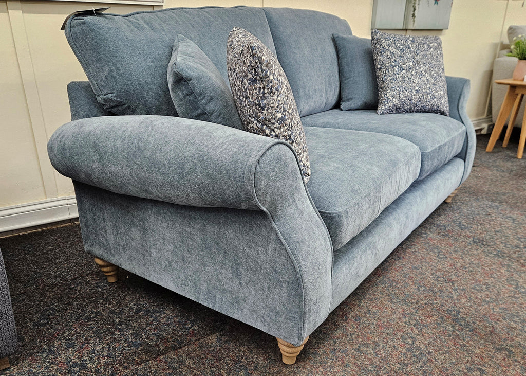 This classy and stylish 3 Seater Sofa and Armchair have frames that are handcrafted from seasoned hardwood from a managed source. In Ansell Aqua Fabric with Country Oak Feet.