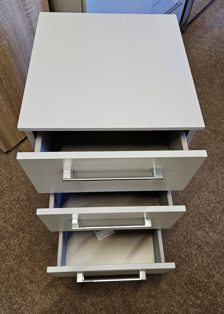 Durable quality 3 Drawer bedside with beautiful, timeless design with high functionality. Furniture with added value that fits into life and will do so for many years to come.