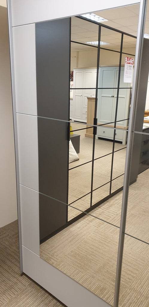 The large surface-mirrors on the sliding doors of the Alexia wardrobe are not only beautifully framed but they also help to make a room look bigger by reflecting light around.