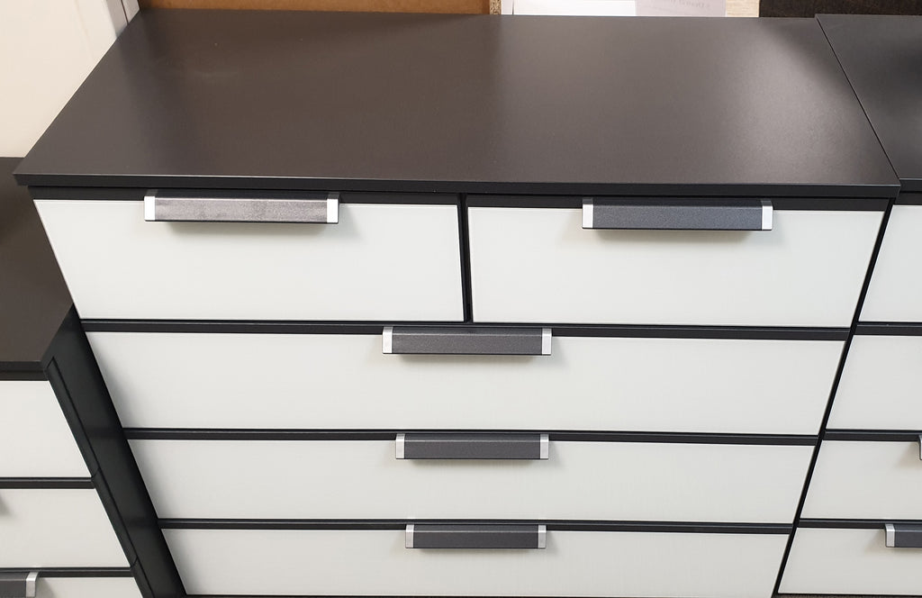 The Essence 2 over 3 Drawer Chest is not only a great storage facility for your clothes but also an elegant and modern piece of furniture that will compliment any bedroom setting. This Chest of Drawers is made from best quality material with Metallic Grey Carcass and High Gloss Alpine White Doors with Carcass colour Handles.