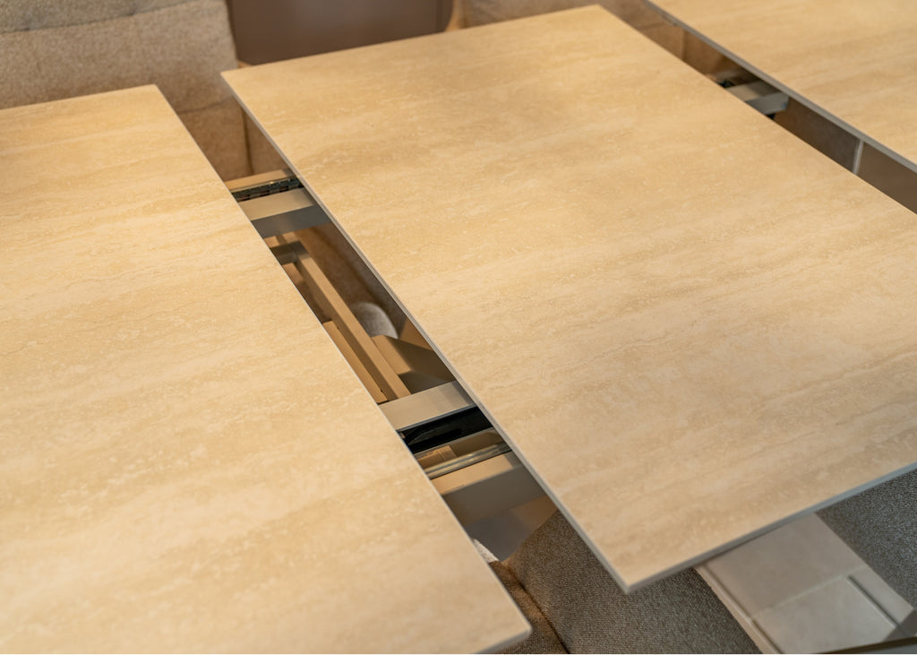 The tabletop is made from premium ceramic, offering exceptional durability without compromising on style. Resistant to scratches and heat, the surface is also incredibly easy to clean, making it a smart choice for busy households that value both aesthetics and function.