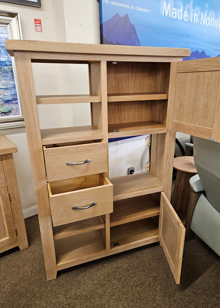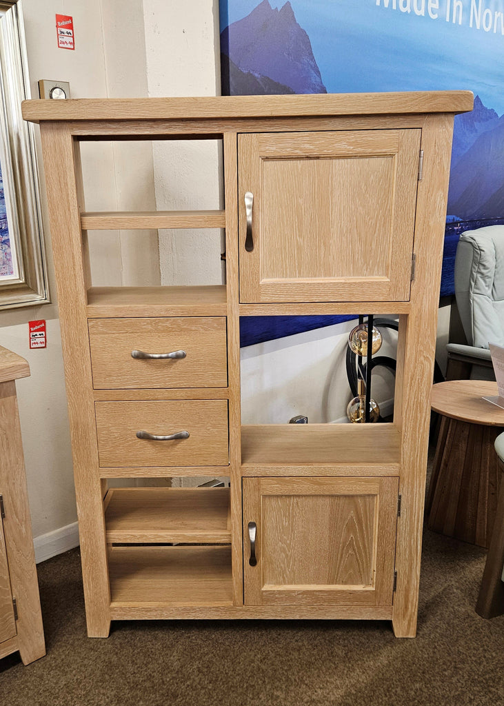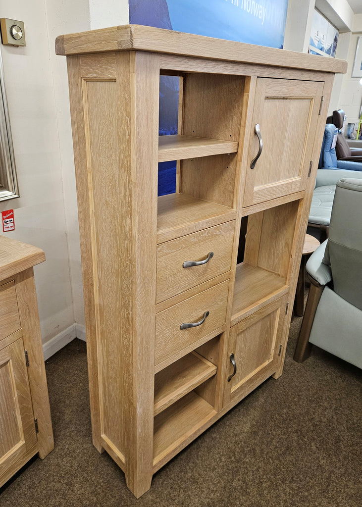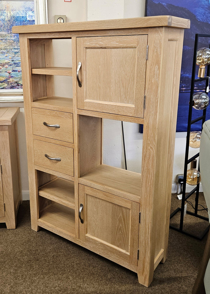 The Avebury Tall Display Unit has a contemporary design and a chunky feel. Made in a beautiful pale oak, creating a lovely sense of light and elegance.